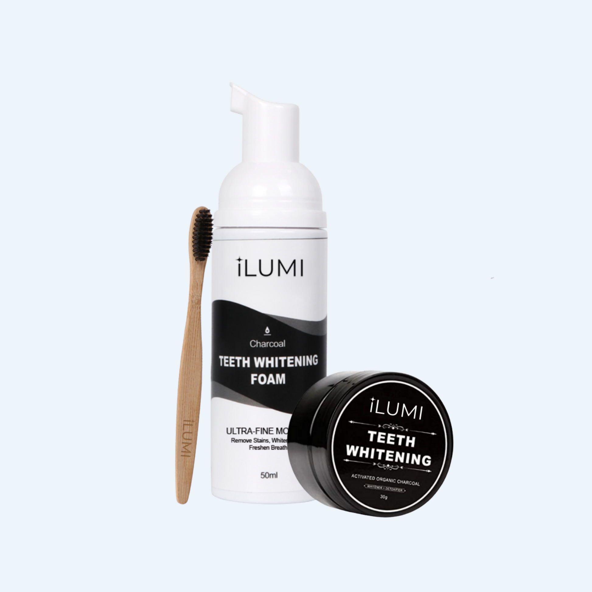 iLUMI's activated charcoal fluoride free toothpaste and powder will noticeably whiten teeth, remove plaque, and detoxify bad breath odors. It's safe for enamel and everyday use, freshens breath and tastes awesome.